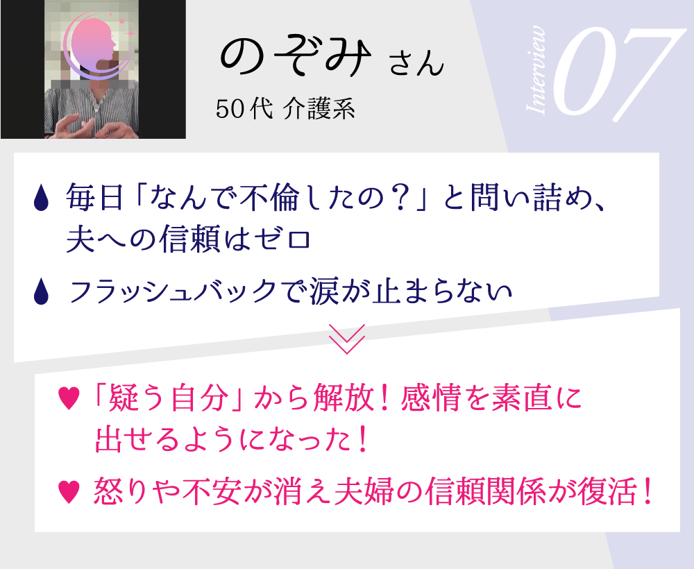 不倫・別居・離婚危機など、「もう無理」と思われる深刻なケースでも多数改善。